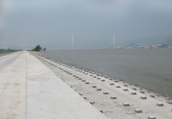 由于新建的防洪堤工程设计标准要求极高,加上受沿江特殊地质与潮汐等影响,工程施工难度非常大。马尾区党委、政府对琅岐防洪堤工程非常重视,予以大力支持,项目承建单位福建省水利水电工程局有限公司积极采取各种举措,克服困难,始终按设计规划积极推进,加紧建设。经过两年半的努力,目前工程已经接近尾声,为琅岐岛建立起了一道坚实的保护屏障。