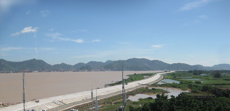 据了解,该项目是市重点项目,位于琅岐岛的西面,从上游雁行江右岸生产堤开始,沿闽江干流右岸前行至琅岐岛鱼嘴口,之后折向北向,途经琅岐轮渡码头,至长门口烟台山凤窝上道山头处闭合,长约7733米,海堤堤顶高7.39米,防浪墙顶高8.19米,整段防洪堤共有芦沙、沃头浦、上道水闸3个水闸,分别位于内河出口处,均为排涝纳潮闸,为双向水闸。