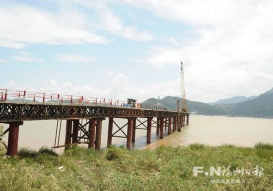 记者在绕城高速公路东南段A8合同段琅岐特大桥2号桥的起点施工现场看到,该桥位于琅岐海屿村的闽江北岸0号~7号桥墩已基本完成桩基施工,一座钢便桥从闽江北岸正在向江心延伸,江北岸大桥施工已经全面展开。此前江对岸长乐潭头镇泽里村部分已启动跨江桥梁桩基施工。两岸开启了双向并进施工阶段。