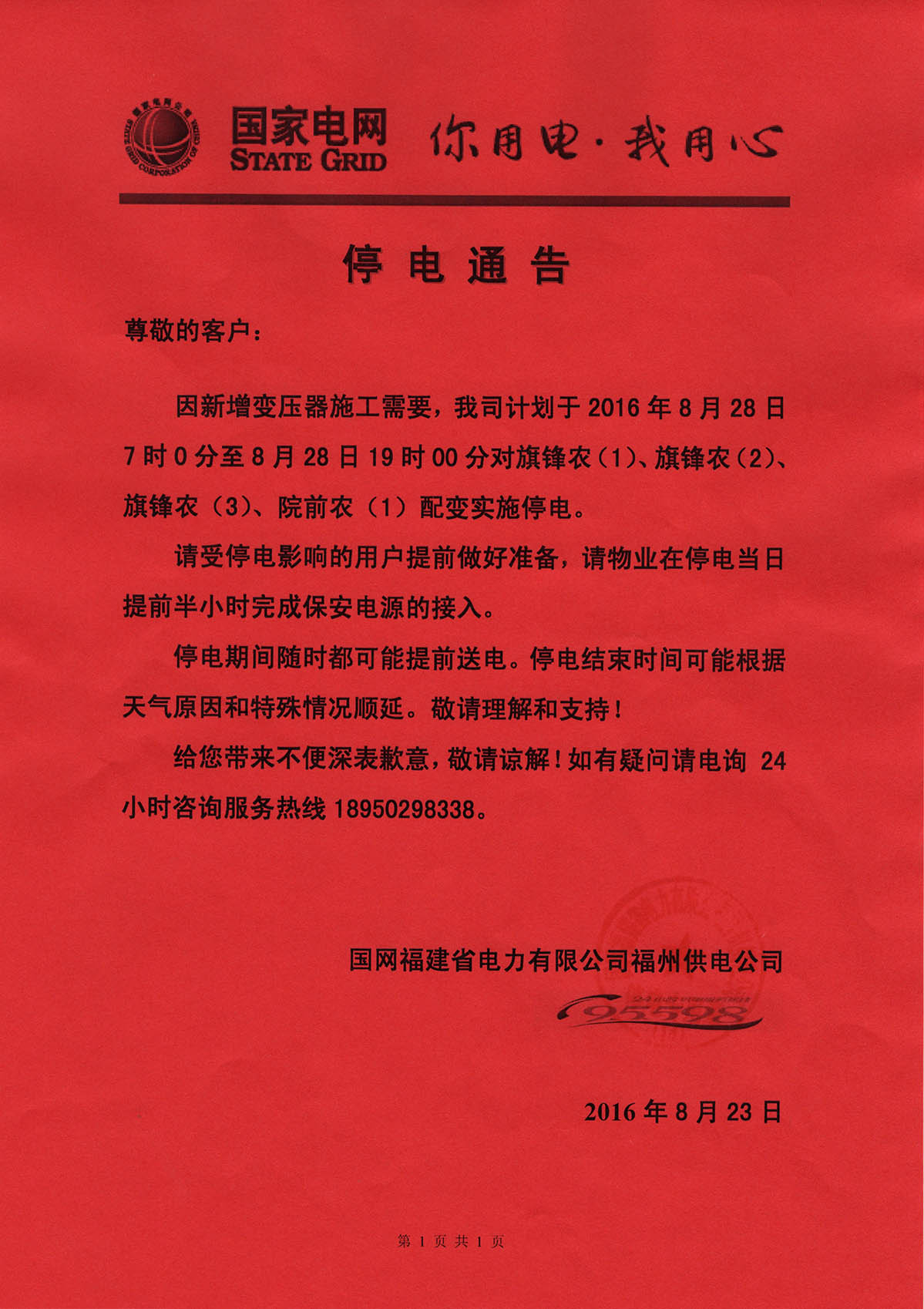 [[停电通知]8月28日海屿旗锋、院前部分路段停电