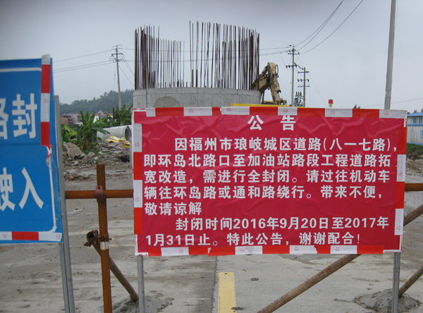 琅岐城区道路(原名进岛路)(旧码头至加油站)道路正在拓宽建设,目前全封闭施工中。