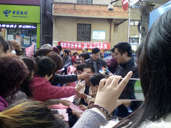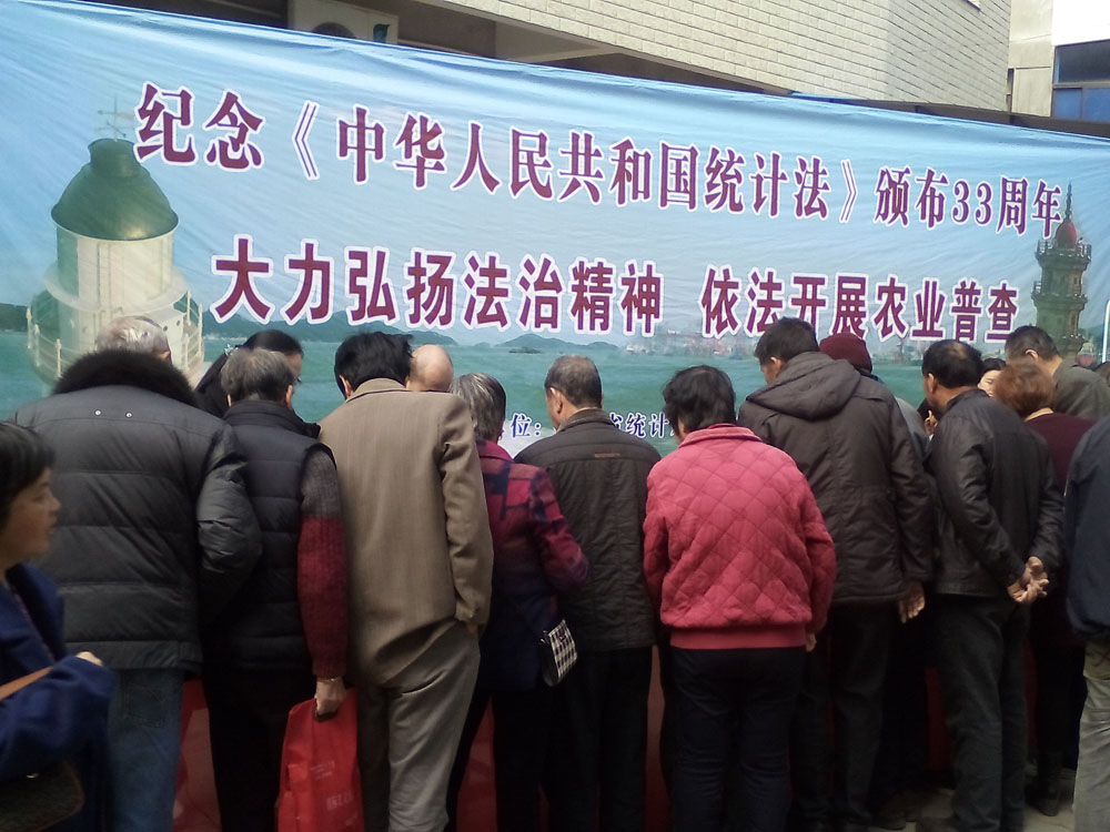 12月8日上午,福建省统计局、福州市统计局、马尾统计局联合在琅岐镇政府前广场举行“服务三农,依法普查”宣传,展示宣传栏,分发宣传资料,并且向群众热情宣讲“中华人民共和国统计法”,特别讲解农业大普查的意义,举办“农业普查知识”竞猜有奖活动等,收到群众热烈欢迎。