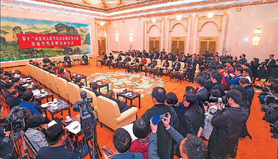 6日下午,人民大会堂福建厅再次吸引海内外媒体的关注。在这里,福建代表团的全体会议向境内外媒体记者开放。