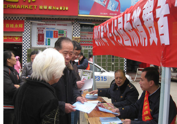 今天是一年一度的“3.15国际消费者权益日”,马尾区市场监督管理局琅岐分局在永辉超市广场举办宣传活动。这次活动主题是全社会应共同努力,做好消费维权工作。监管局的志愿者向广大群众分发有关消费维权宣传资料,进行消费维权咨询。活动现场吸引了不少消费者积极参与。