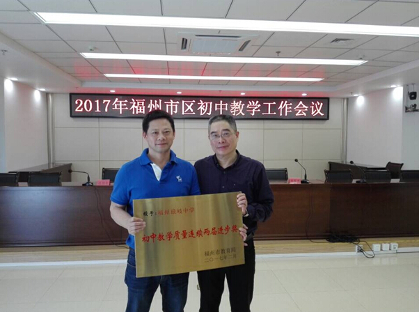 日前,在2017年福州市区初中教学工作会上琅岐中学荣获“福州市初中教学质量连续两届进步奖”,张家兴校长上台接受市教育局领导颁奖。