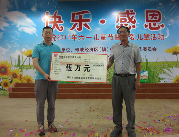 琅岐著名企业家粱守伙先生为这次活动捐赠五万元。琅岐经济区关工委主任张如福特向粱守伙先生经营的福州市瑞银公司赠送了“情系下一代,助学送温暖”牌匾,对粱守伙先生热心慈善事业,关怀青少年健康成长的善举表示衷心感谢。