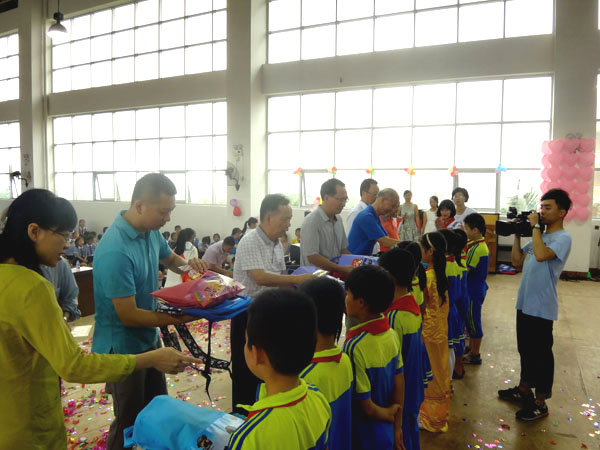 吴庄小学的小朋友精彩表演, 时时被一阵阵掌声所淹没,欢声笑语不断,大家都沉浸在一片欢乐的海洋里。在无尽的欢乐同时,琅岐区(镇)关工委向家庭经济困难的孩子和农民工子女发放“爱心款”和慰问礼品,让一些弱势学生群体,能够在同一片蓝天下,和其他小朋友们一起,绽放出美丽的笑容。