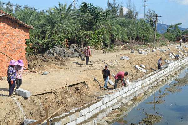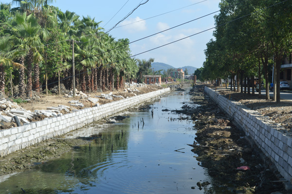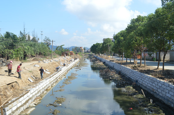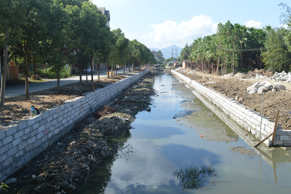 琅岐三平管理区(含院前村、后水村、南兜村、连般村、董安村)的村前浦渠绵延4千多米,是几个村居唯一的排水通道。多年来浦渠没有治理,有人在浦渠两旁违章搭盖,或往浦渠抛撒垃圾,造成淤泥沉积严重,水道堵塞,影响群众生活。三平管理区在琅岐镇政府的支持下,斥资500多万元,从琅岐变电站前到董安村路段,对4200米长的浦渠两岸砌石,进行全面治理,清淤疏通水流。群众说,建设美丽乡村,不要做表面文章,要办实事好事,像这样的民生工程,就值得赞扬。