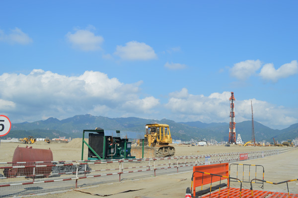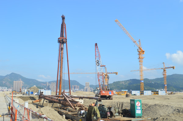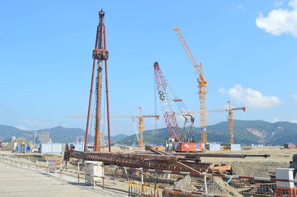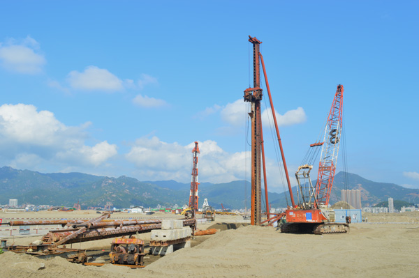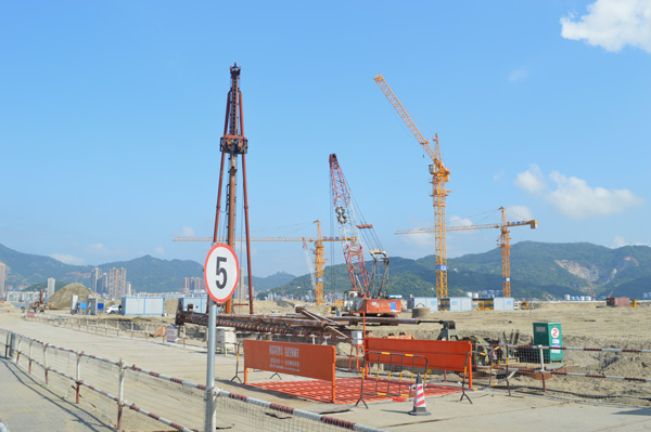 笔者走进位于琅岐岛路西部的对台客运码头施工工地,许多推土机、压路机、运料车络绎穿梭。广阔的站前广场已经成型;客运大楼正在定墩施工。红旗招展,机器轰鸣,热火朝天的施工景象映入人们眼帘。