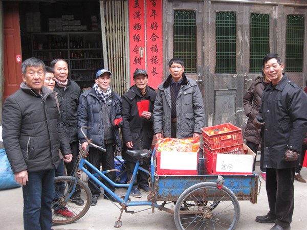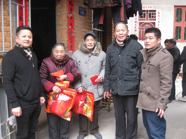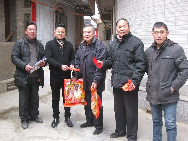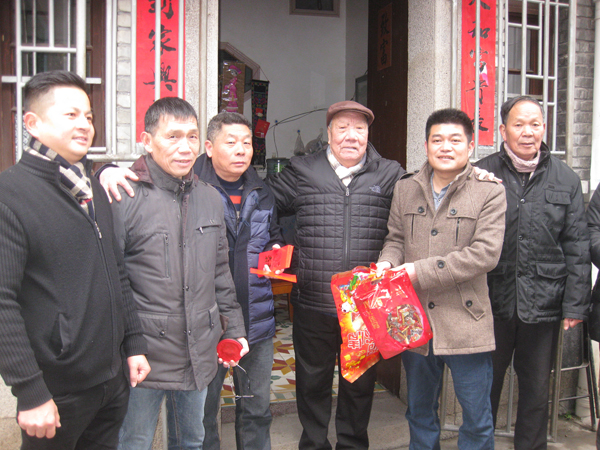 星辉村共有60岁以上老年人四百余人,2月5日老人们兴高采烈地来到老人会领取新年贺礼(年糖年饼和太平面)。为了方便百位七十岁以上老人,村两委在福州市人大代表、村支书江典枝带领下,会同老人会的理事们,带着红包,推着礼品车,挨家挨户地将春节慰问品和200元红包送上门。