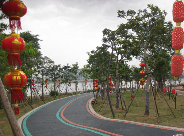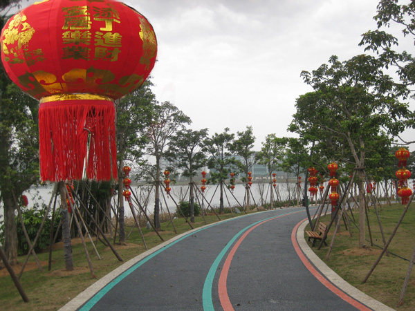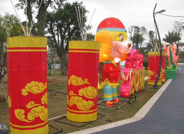 一年一度的元宵佳节即将来临,琅岐新建的红光湖公园挂满大小红灯笼,灯光璀璨。在红光湖的西大门,两组华美的大型花组,颇具特色,美轮美奂的视觉盛宴让人流连忘返。