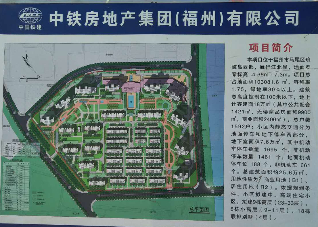 琅岐岛西部芦砂口地处三江口,是建筑宜居住宅的绝好地段,去年被中铁房地产集团(福州)有限公司拍卖中彪,现在该商品房住宅项目开始施工。该项目总建筑面积25.6万平米,将建设18栋联排别墅(四层),8栋小高层((9-11层),和9栋高层(33层)。