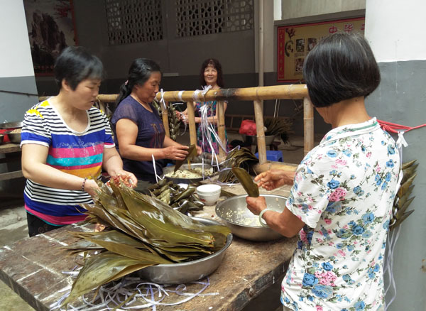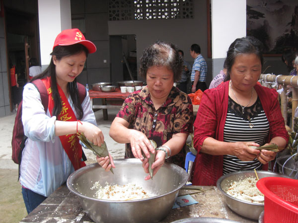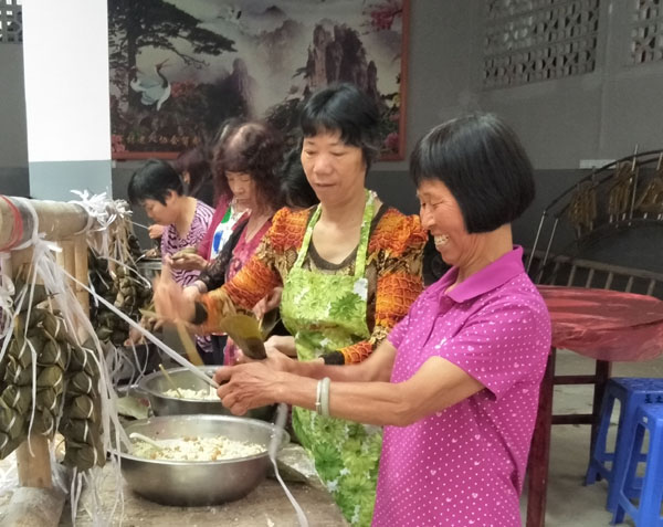 本次活动主题为“弘扬传统文化,建设和谐家园”。作为集体活动的重要环节,“大家动手包粽子”吸引了不少女村民积极参与。420斤糯米,要包成五千多颗甜咸不同口味的粽子,其中工作量不言而喻,但是大家心灵手巧,欢声笑语,兴致勃勃。