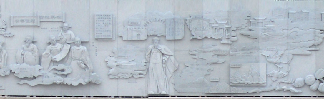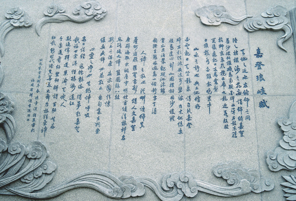 这里最值得一提的是组雕的卷首“嘉登琅岐赋”,作者为当代辞赋家,书法家,现任福州市文联主席陈章汉先生,赋文凝练畅达、文气沛然,从四个层次绘就了一幅千年海岛图卷,并为浮雕作了最精准的诠释。