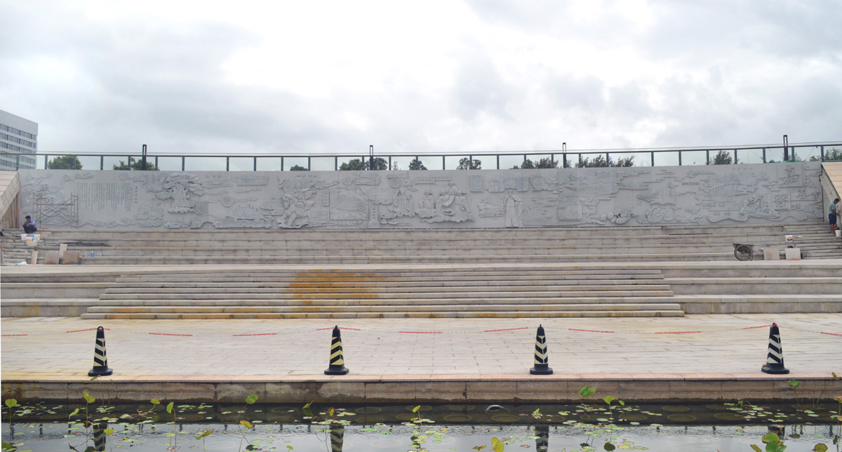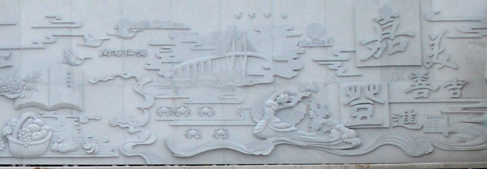 《嘉登琅岐》白色花岗岩浮雕日前在琅岐红光湖中心区安装完毕。这座组雕高3.1米, 宽41米,气势雄伟,夺人眼球。