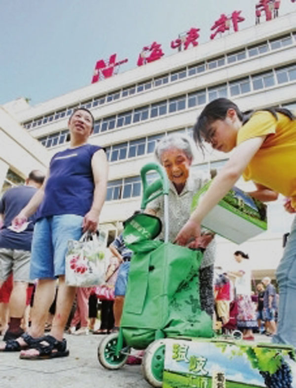 “琅岐葡萄很甜、很香,我很喜欢吃,得知海都报举办琅岐葡萄特卖会,4点多就起床,来买葡萄了。”住在金牛山附近一家敬老院的邓炳灿老人,昨天清晨5点就到了海都大厦门口,他说想买2箱葡萄,担心来迟了买不到。