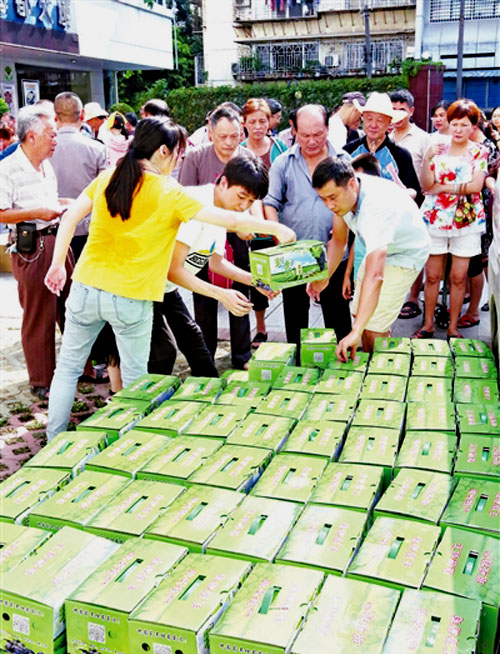 “我还想买,可没了。”市民陈先生有些失落地说,7月21日,他参加“海都品游官”到琅岐采摘葡萄,带回家一箱葡萄,家人吃了直夸:“比蜜还甜!”这不,在老婆的催促下,他昨日骑着电动车来,想再买2箱,可是来晚了。