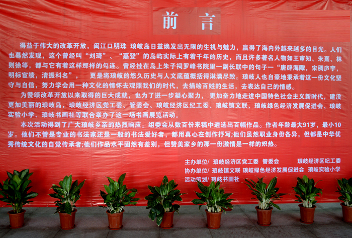 展览展出了来自琅岐书画爱好者们的优秀书画作品,题材丰富,既有地方特色,又有时代气息,充分反映了新时代琅岐推进开放开发、建设国际生态旅游岛的最新成果。本次展览吸引了众多琅岐居民前来欣赏。活动中,福建省作家协会副主席陈章汉先生还向琅岐经济区赠送了 《嘉登琅岐赋》书法作品。
