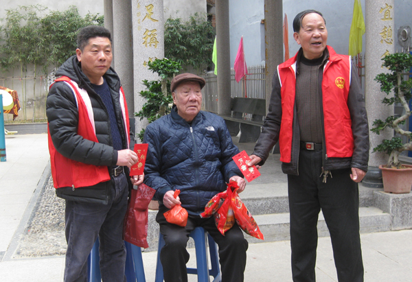 新春佳节即将来临之际,琅岐星辉村依照惯例开展 “迎新春,关爱老人”活动 。村两委干部会同老人会的理事们挨家挨户为金百为位八十岁以上老人送上春节慰问品(年糖年并、太平面和红包)。四百多为六十以上的老人也集体到老人会领取新年贺礼。老人们手捧新年礼物,欢天喜地,脸上洋溢着幸福的笑容,他们感受到新时代老人的幸福!