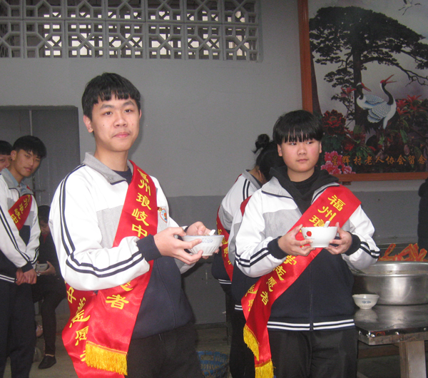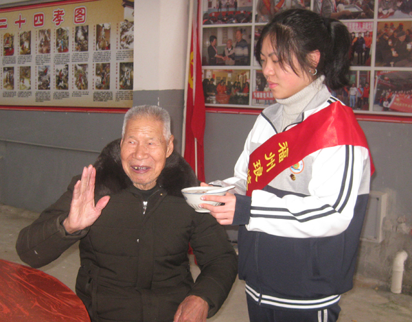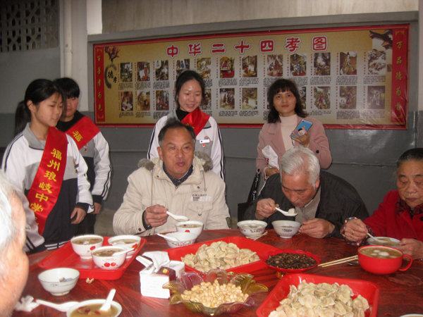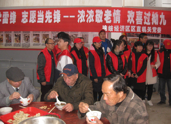 志愿者将熬制好的甜粥,捧送给现场参与活动的老人,祝福老人们平安、康泰,他们还为行动不便及孤寡老人上门送去拗九粥,帮助打扫卫生,关心他们的身心健康。