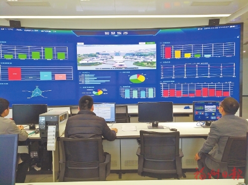 在琅岐九龙商业中心,城市运营指挥中心已装修完毕,上下两层共1500平方米,里面的高科技让人眼前一亮。
