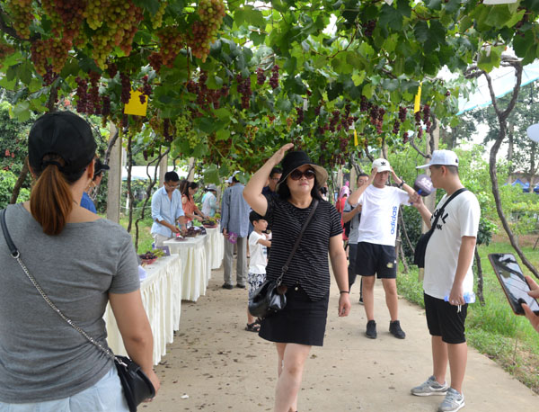 人们在琅岐葡萄文化廊,喜悦地观赏、品尝到包括夏黑、醉金香、美人指、红宝石、香妃等在内的20多种葡萄,还热情参加吃葡萄比赛等,活动气氛极其热烈。葡萄节将推动琅岐全域旅游发展,并为琅岐葡萄业发展导入更多客流。