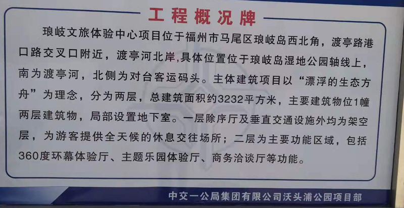 沃头浦公园项目,是琅岐文旅先期启动项目之一,项目占地面积152亩,总投资约2.1亿元,其中琅岐文旅体验中心建筑面积约3253平方米,主体建筑以“漂浮的生态方舟”为设计理念,主要围绕科技、创新主题,运用多媒体实现琅岐文旅展示、体验等功能。项目建成后将作为琅岐国际生态旅游岛的标志性建筑,项目计划于明年5月建成投入使用。