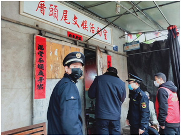战“疫”进行时,琅岐执法中队坚守疫情防控阵地。中队人员实行任务分工、网格化管理,全面取缔占道经营和流动摊点,联合市场监督局对沿街店铺进行劝停;加强防疫宣传,执法车辆反复滚动播放疫情防控相关知识;联合环卫成立“喷子行动队”,对各个街道、市场周边、人群易聚集点进行防疫消杀;配合镇政府对三轮车运营人员进行体温测量等工作。中队教导员郑德辉说,“执法过程中,遇上群众不配合,被骂是常有的事,特别是取缔占道经营,关停店铺十五分钟有可能才清理1米。现在市容环境的整治离不开中队每一个小伙的辛苦,他们都是这场战‘疫’的主角。”每个城管人的“硬核”担当,构筑了琅岐防疫阵地的牢固壁垒。