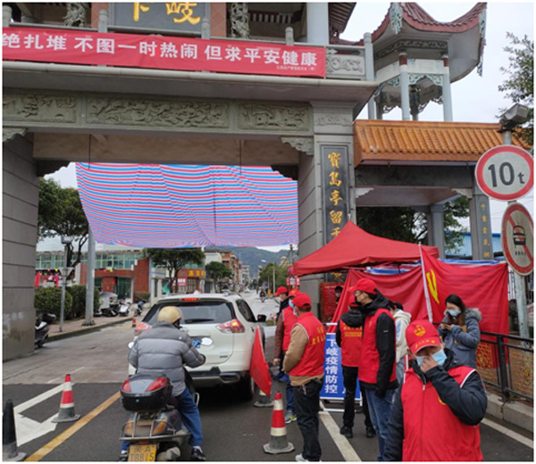 朱在耀是乐村村的村主任,从大年初二开始他和全体村干部就放弃了春节假期,积极地投入疫情防控工作中。他们每天除了入户走访摸排,还要张贴通知公告,挨家挨户宣传到位。最近一段时间,他们还联合红旗片区内的其他村(争丰村、劳丰村、劳光村)进行联防联控,一起在下岐门庭设置了疫情防控的卡口,每天从早上8点到晚上8点,在防控点轮流值守,给来往的人员做好体温检测和登记工作,避免外来人员进入,保护好村里的安全。