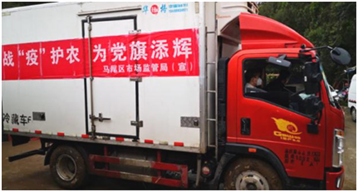 面对疫情对农产品销售造成的严重影响,市场监督管理局协同镇农业服务中心一手抓防疫、一手抓产销,通过销、装、运三方面发力,打通农产品销售渠道,尽最大努力帮助农户减少损失,为打赢这场疫情防控阻击战贡献了坚实的力量,为“抗疫一线飘扬的党旗”添了一份彩。