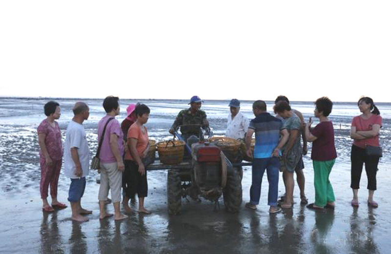 7月21日下午,正值农历初一,大潮的退潮期,云龙村的滩涂上蛏农们骑着摩托车、三轮车赶到蛏地,沿岸沙滩上一排排密密麻麻的车辆,见证着收获的繁忙。