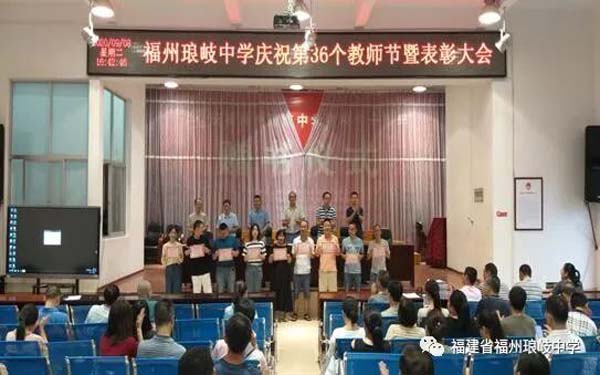 为庆祝第36个教师节,琅岐中学于2020年9月8日下午,在多功能厅隆重举行教师节表彰大会,