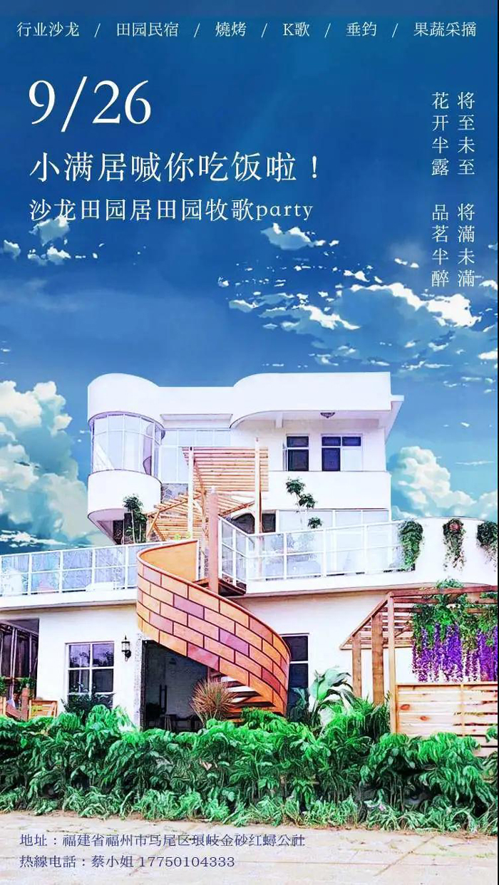 小满居是集活动沙龙、住宿、娱乐、美食为一体的文化沙龙田园居,为客户提供行业沙龙活动、田园民宿、空中花园娱乐、烧烤、K歌、采摘体验、垂钓体验、企业团建、乡野土味佳肴等活动项目。