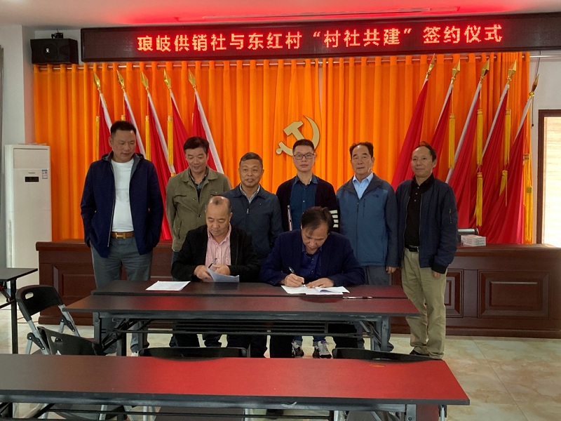 仪式上,琅岐供销社主任林炎忠、东红村主任陈师滔代表双方现场签署了协议。随后,东红村陈善民书记介绍了东红村作为国家城乡融合试验区的发展情况以及近期工作布局,并希望供销社能积极参与东红村下一步的产业发展和乡村振兴工作。林炎忠主任介绍了供销社主要职能和下一步工作计划,希望利用东红村作为城乡融合试验区的各种资源优势,在此次“村社共建”的基础上进行更深一步的合作,在涉农产业上寻求更多合作契机,共谋发展,成为联系农民紧密的经济共同体。