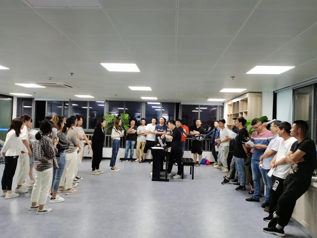 合唱团邀请了声乐专业老师指导,在开班仪式和首次训练课上,老师从最基本的如何发声训练教起,把合唱队分成女高音、男高音、女低音、男低音四个小组进行训练,并对照参赛曲目之一的《今天是你的生日,我的中国》进行模唱。后续,公司合唱团将按照计划进行每周两次的集体排练,争取在大赛中取得良好成绩。