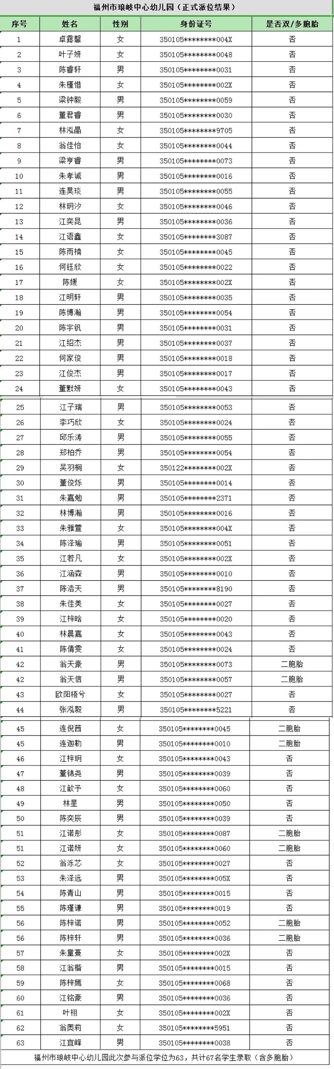 琅岐中心园2021年秋季派位结果名单
