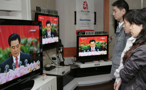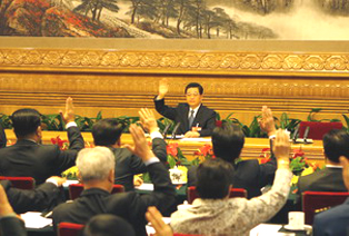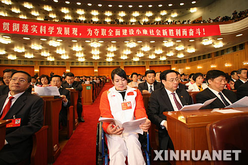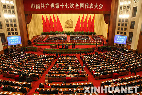 10月15日,中国共产党第十七次全国代表大会在北京人民大会堂隆重开幕。新华社记者 李涛摄