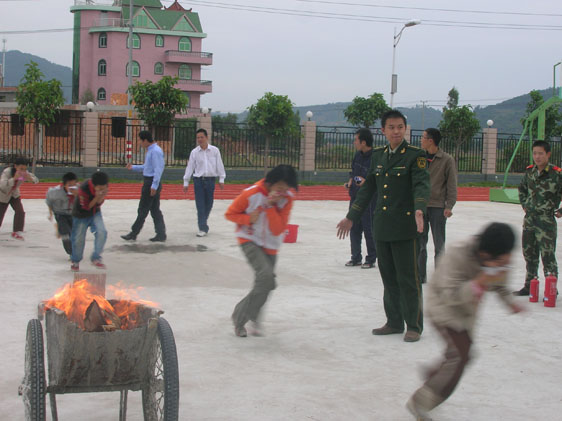 不久前,吴庄小学举行“生命至上,和谐平安”消防演习。演习邀请了琅岐派出所民警张勇及三位消防员到现场进行组织演习。演习分三段,层层递进。首先,由各班班主任在班级开展以消防知识为主要内容的中队会,使学生明确演习的程序,学会看疏散图,安全指示,并掌握疏散逃生的方法。接着,开始分别演练从教学楼,综合楼,艺体楼疏散逃生演习,从警报,到组织,到疏散全校师生演习有序,高效。最后,在操场举行模拟火灾及灭火演习,使师生学会在真实环境下如何掌握正确的姿势进行逃生,学会使用灭火器。整个演习十分成功,得到张勇民警及消防员的高度评价。