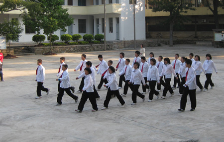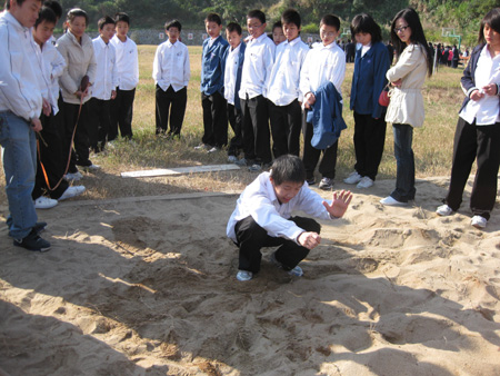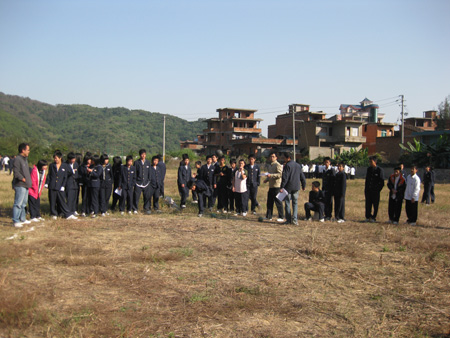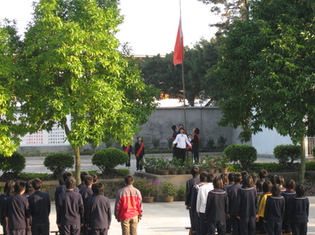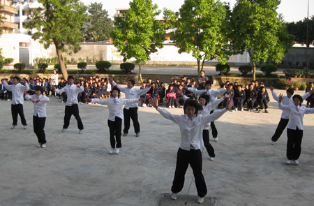 金砂中学第十二届运动会今天上午拉开帷幕。全校师生精神饱满地参加本届运动会。运动会举行了升旗仪式后,校长陈学琛宣布校运会开幕。接着举行广播体操比赛 和其他各项赛事。