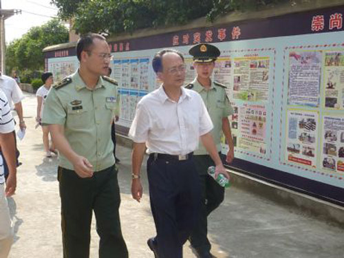 日前,省高级人民法院副院长何明带领省综治委调研督导组到马尾琅岐防派出所辖区进行调研。省综治委调研督导组一行在福州市、马尾区相关领导的陪同下,来到马尾琅岐边防派出所辖区吴庄华侨小学、琅岐镇红光爱民固边模范村进行实地调研,督导组一行查看了校园安保及该所开展爱民固边战略状况,听取了琅岐经济区相关领导的工作汇报。同时,调研督导组就校园安保、创建爱民固边模范经济区等工作进行了细致的了解,督导组对边防官兵在创建爱民固边模范经济区、警官兼任村官等工作中所取得的成效给予肯定。期间,琅岐边防良好的警容警姿和精神面貌给督导组留下了良好的形象。