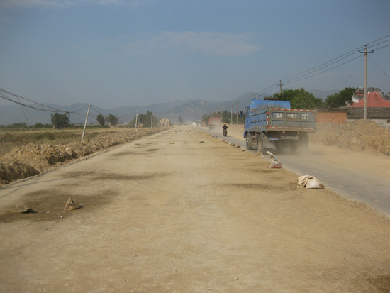 据施工人员说,水泥路面施工全部运用现代机械作业,进行神速,只需三四天时间,即可全线(半边)完成水泥路面作业。他说,全部工程完工,在元旦之前应该没问题吧。