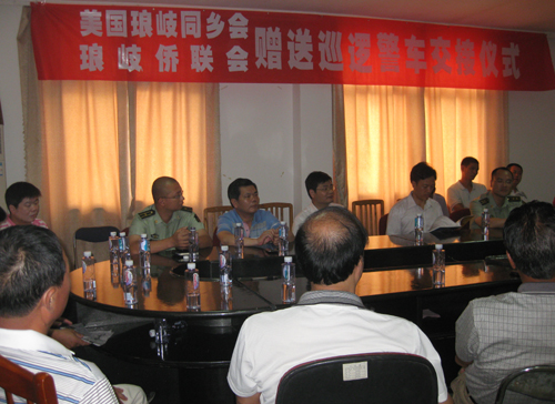 琅岐边防所林所长发言,对美国福州琅岐同乡会、琅岐侨联向琅岐边防派出所捐赠两万元购置巡逻警车,表示衷心感谢,他表示广大边防官兵将以辖区为家,视百姓为父母,将更加努力做好爱民固边,不辜负大家期望。