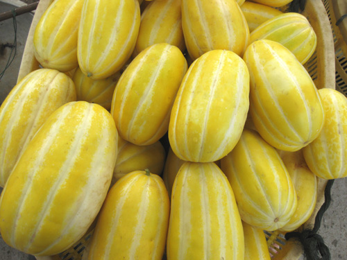 琅岐的甜瓜,黄澄澄,金灿灿。甜瓜因味甜而得名,琅岐的甜瓜果肉洁白脆酥,水分充沛,口感很好,也是夏令消暑瓜果。据测定,甜瓜营养成分均不低于西瓜,其中含有大量碳水化合物及柠檬酸等。多食甜瓜,消暑热,解烦渴,利小便。