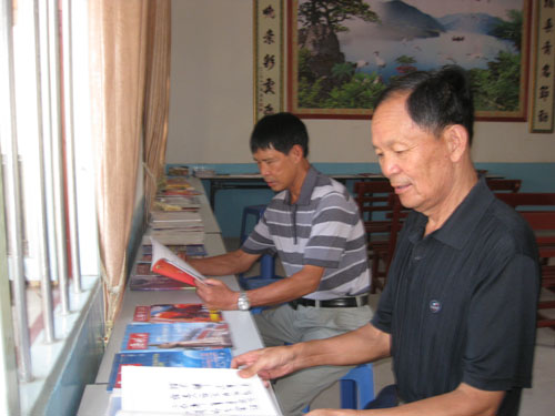 活动室墙面的中央是巨大的“松鹤延寿图”,两壁悬挂许多晚年祝福、倡导保持晚节和文明养生的标语条幅。楼下是恬憩室、电视室,老年朋友或愉悦品茶,谈天说地,或观看电视节目,关心国内外时事或观赏文艺节目,个个悠然自得;二楼是阅览室和棋牌室,老年朋友们或切磋棋艺,或围城攻略、或读书阅报,各有所乐,其乐融融。特别值得一提的是阅览室里报纸杂志种类繁多,有《福建日报》、《福州日报》等党报,还有许多适合老年朋友阅读的报刊杂志,许多报纸杂志是琅岐区(镇)政府赠送的。阅览室为老人提供精神食粮,使老人“老有所学”。
