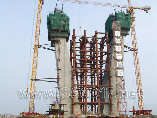 主塔是大桥建设的最关键部位,位于亭江一侧的3号主塔高度已达54米