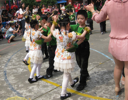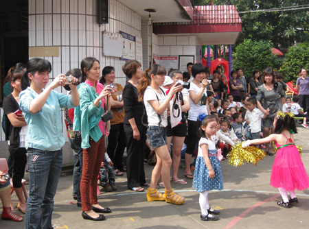 看到小朋友的精彩表演,前来观看的家长更是流露出喜悦的神情,许多家长举起照相机、摄像机,拍摄下动人的欢乐的景象。