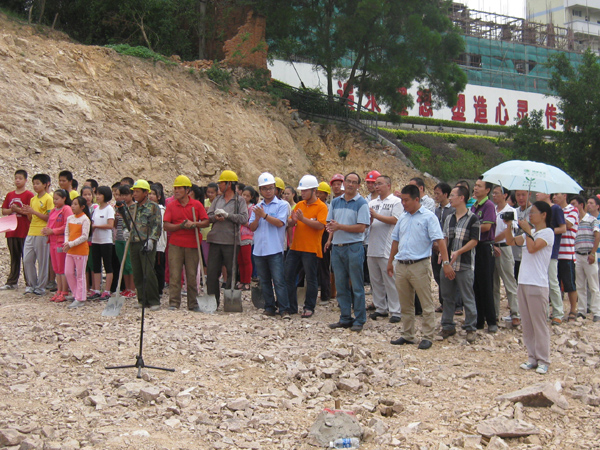参加开工仪式的学校师生代表与施工人员代表