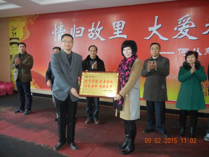 中国软包装集团执行总裁陈华先生代表何从女士发表开场致辞。他表示,企业的发展离 不开社会的发展,同时得益于党和政府提供的良好的社会环境,得益于各级领导和社会各界的支持。因此,企业在取之于社会的同时更要懂得回报社会、回报家乡。琅岐镇人大主席潘振强同志对中国软包装集团及何从女士的爱心捐赠表示感谢,并对琅岐镇的慈善事业寄予希望。活动中,潘振强主席为“何从慈善基金”创始人何从颁发了荣誉牌匾,表彰其对我镇慈善事业作出的突出贡献。旨在向全社会倡导慈善文化和理念,弘扬无私奉献、扶贫济困等传统美德,鼓励更多的成功企业、爱心人士加入到慈善事业中来,共同为社会上需要帮助的弱势群体奉献一颗爱心,撑起一片蓝天,为构建和谐琅岐贡献一份力量。