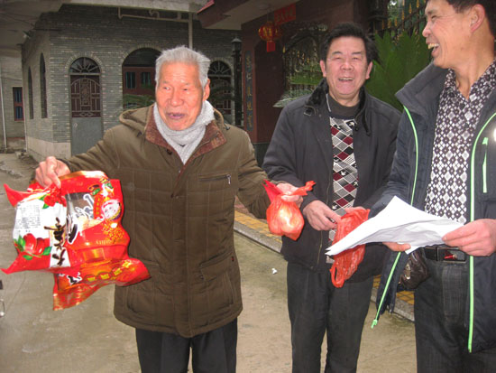 猴年新春佳节即将来临之际,琅岐星辉村依照惯例开展 “迎新春,关爱老人”活动 。村两委干部会同老人会的理事们挨家挨户为78位八十岁以上老人送上春节慰问品(年糖年并、太平面和红包),430位六十以上老人也到到村委会集体领取新年贺礼。老人们手捧新年礼物,欢天喜地,脸上洋溢着幸福的笑容,他们感受到人间的温情, 和社会的美好
