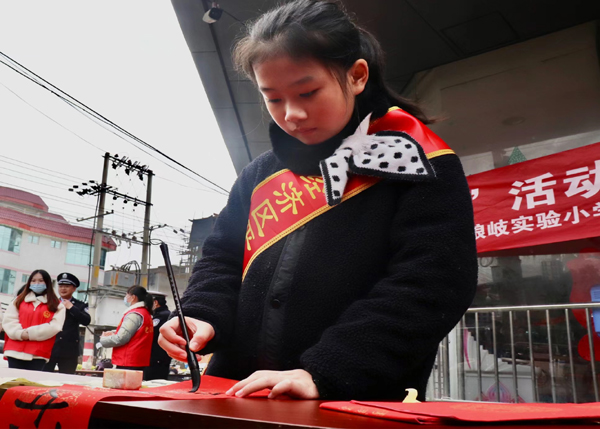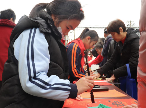据了解,19日上午,“翰墨迎新年,春联送祝福”活动启动,共送上500副春联。琅岐书画社负责人陈虎志老师介绍,“小小书法家免费送春联”活动已经连续举办十多年,通过写春联活动,不仅弘扬了中华传统文化,让同学们了解书法,追求书法,喜欢书法,传承书法文化内涵,展示书法的魅力,在浓浓的迎新气氛中更增添了一份喜气,一份年味。同时,也在二十大即将召开之际,下基层写春联为百姓送祝福,祝愿百姓阖家共享和谐幸福年。